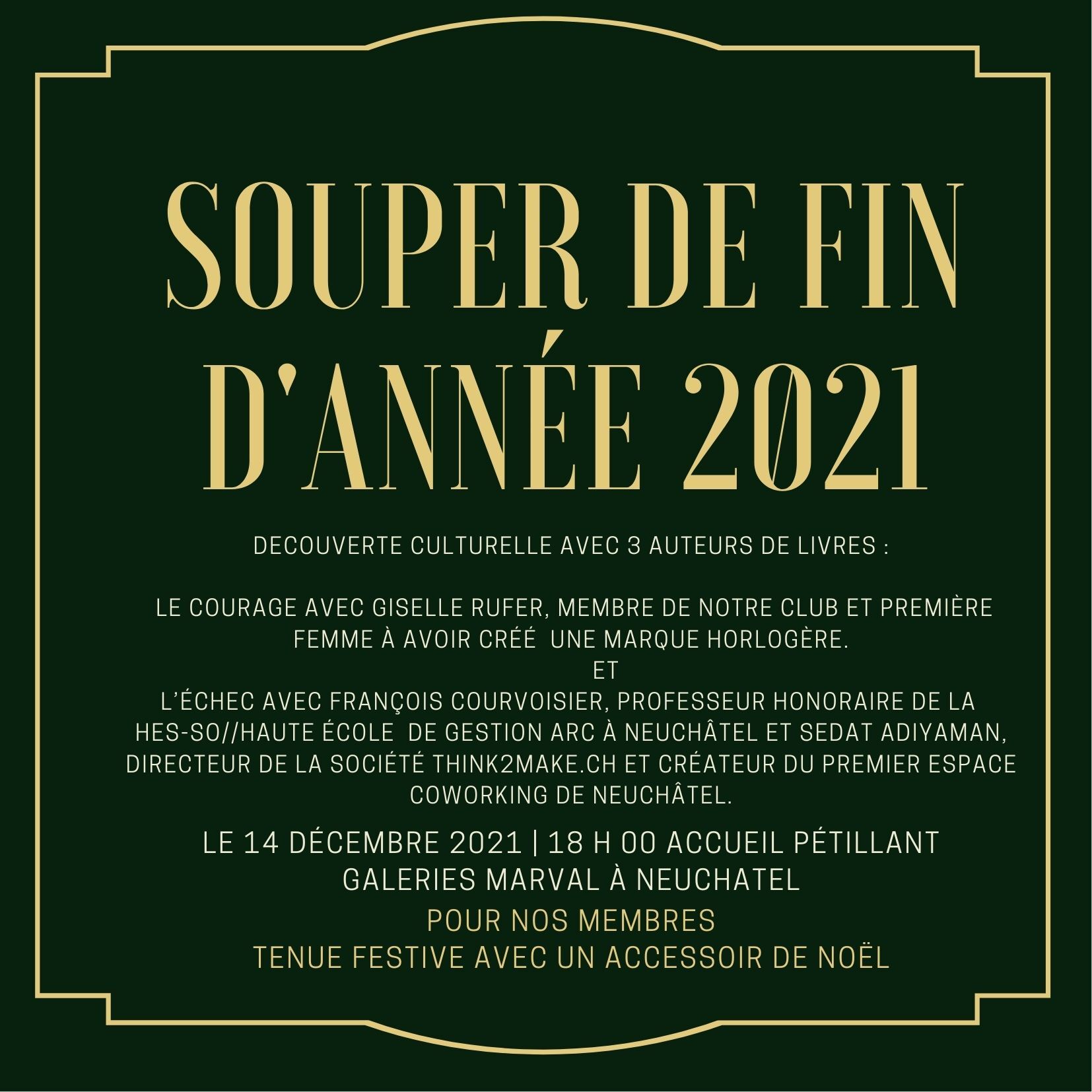 Coût de la soirée : CHF 60.- pour les membres